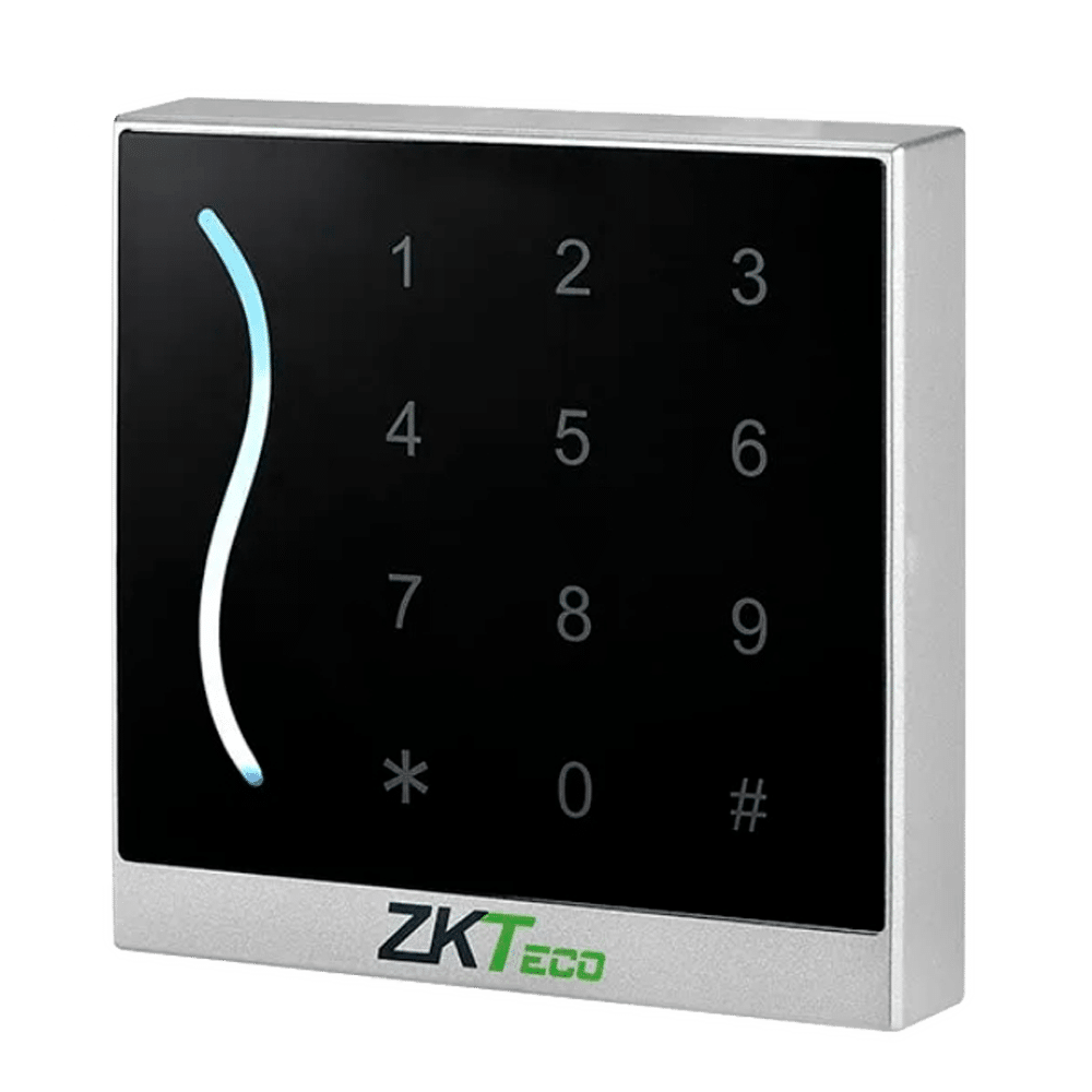 Lector de acceso – Acceso por tarjeta EM y PIN – Indicador LED y acústico – Wiegand 26/34 – Compatible con controladoras ZKTeco – Apto para exterior IP65