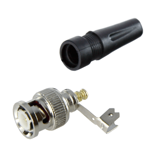 Conector BNC SAFIRE macho para atornillar. El conductor del cable se atornilla directamente al conector, por lo que no requiere crimpadora, únicamente destornillador. Conector universal, válido tanto para cable RG-59 como para Micro Coaxial.