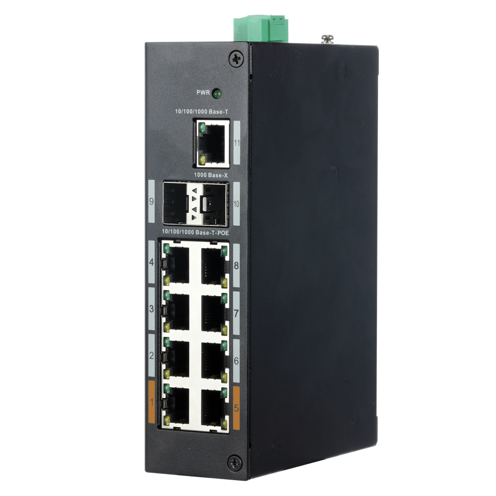 - 8 puertos RJ45 + 2 puertos SFP + 1 puerto RJ45